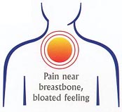 Indigestion covers a variety of symptoms including pain near the breastbone, nausea or bloating.